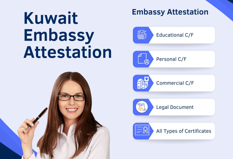 Expert services for attesting Indian documents for use in Kuwait. Fast and reliable processing available.